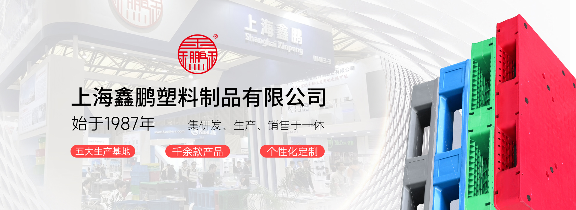 上海鑫鵬塑料創始于1987年,始終專注深根塑料產業鏈,業務板塊包括:塑料原料貿易、塑料制品研發制造(塑料托盤、塑料箱筐、卡板箱、環衛桶等)?,F全國有5個生產基地:上海2個、四川1個、江蘇2個。